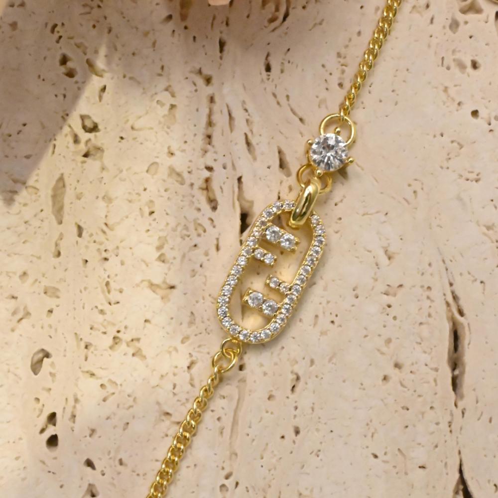 • تصميم مميز: اسوارة F ذهبي تضيف لمسة شخصية وأنيقة.